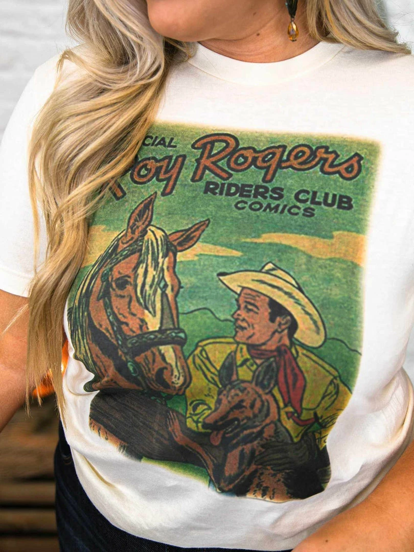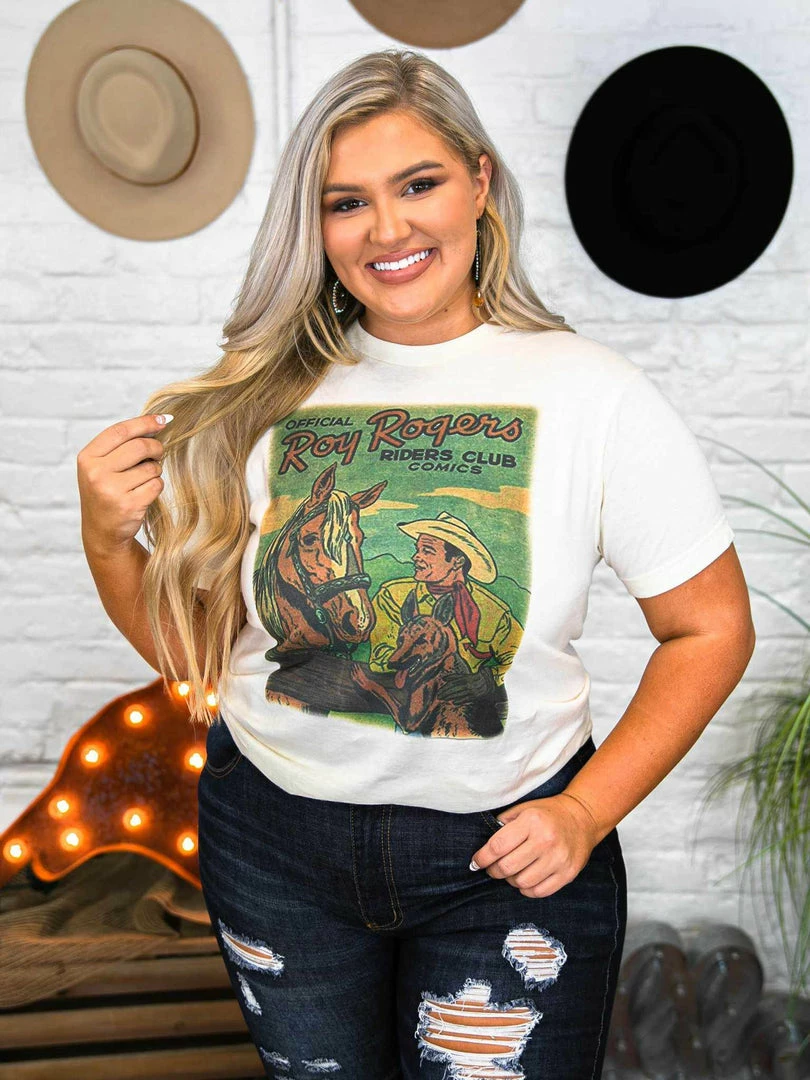 Calling all the Western Chics! We are loving the look of this comic book tee! Perfectly paired with your denim jacket! Bling option available. Printed on a vintage natural tee.