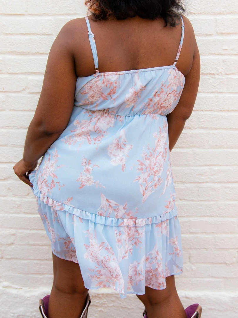 Light, fresh and just a little flirty – this might just be the perfect summer dress! Light blue with delicate pink floral pattern, this dress can take you from running errands to dining alfresco! This dress is true to size and has adjustable straps for our taller gals! The dress is SO flowy and lined for coverage. Made by Southern Fried Chics & designed by our Owner Liz!