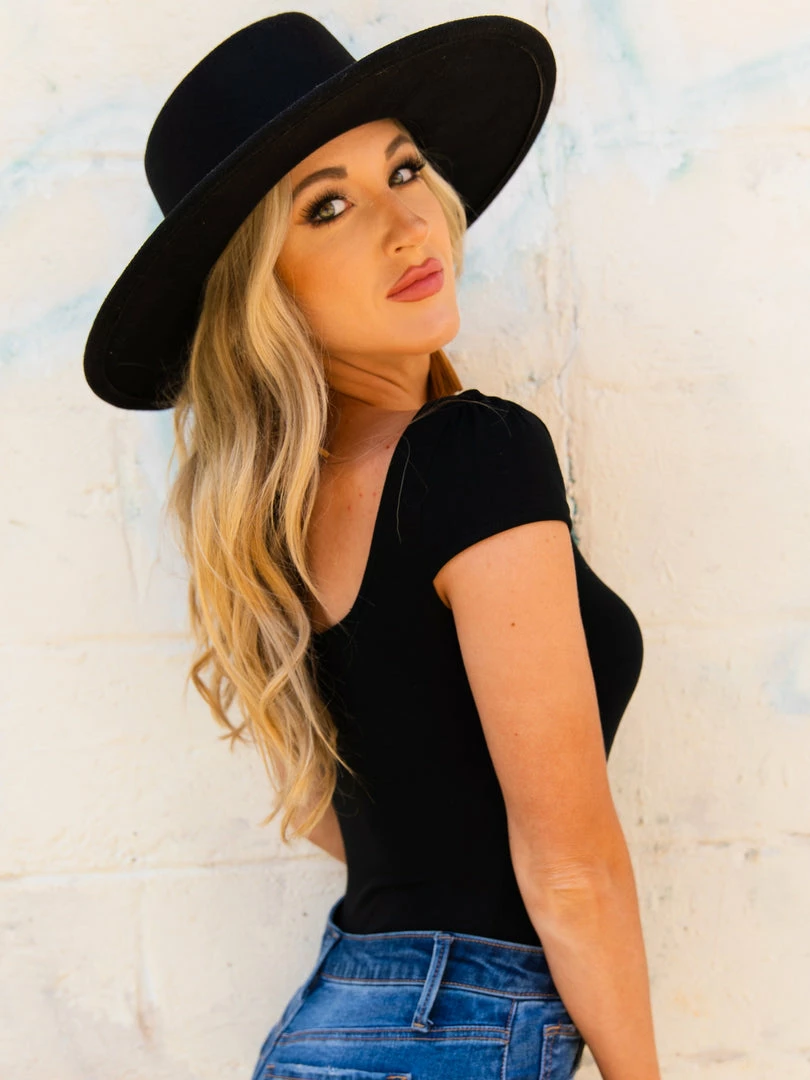 Square Neck Black Bodysuit with Cap Sleeves