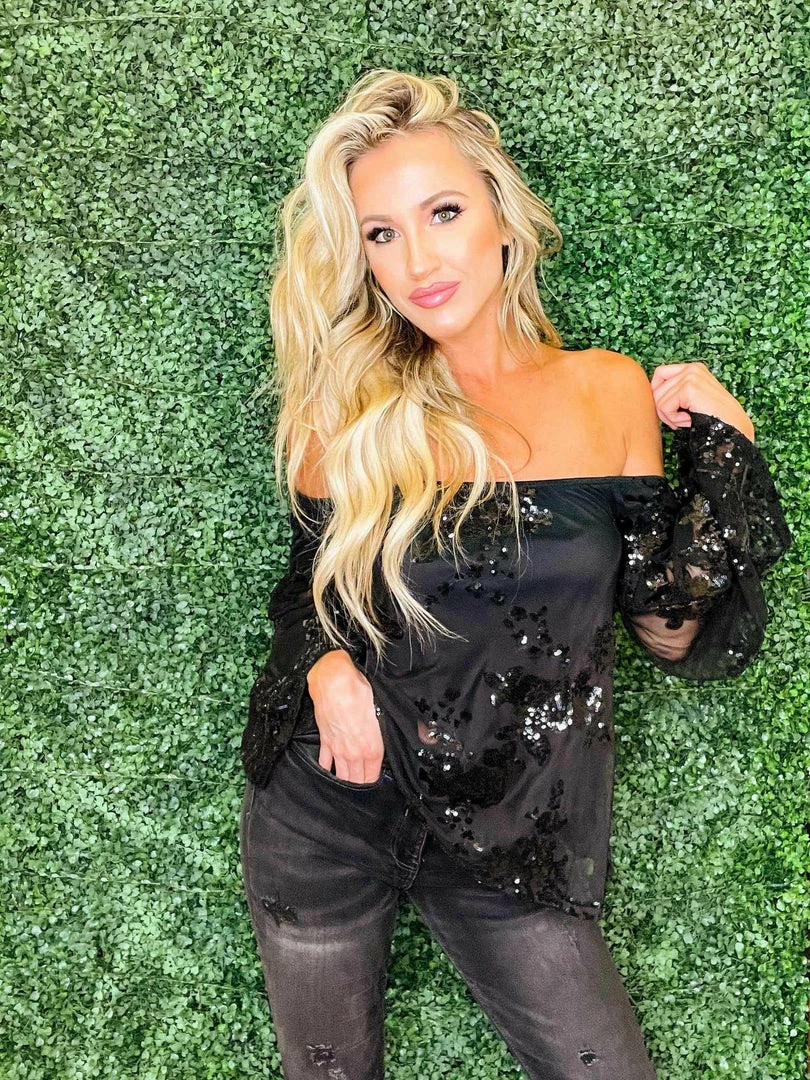 Talk about all the SASS! So cute and so trendy, the “Sequin Talk About It” off-shoulder top is fabulous for anywhere you go! The top is perfect dressed up or make it more casual with your denim cutoffs! The bell sleeves are seamless and so elegant. The details are stunning! You will not regret this! Designed by our owner, Liz, and part of the Chics Collection.