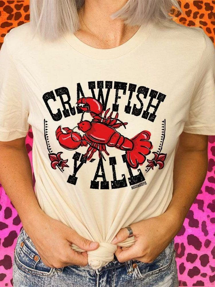 We can’t keep away from graphic tees! This is your tee for all things crawfish! This tee is perfect for layering. Easily dressed up or dressed down! Printed on a unisex super-soft tee. Cream-colored Tee.