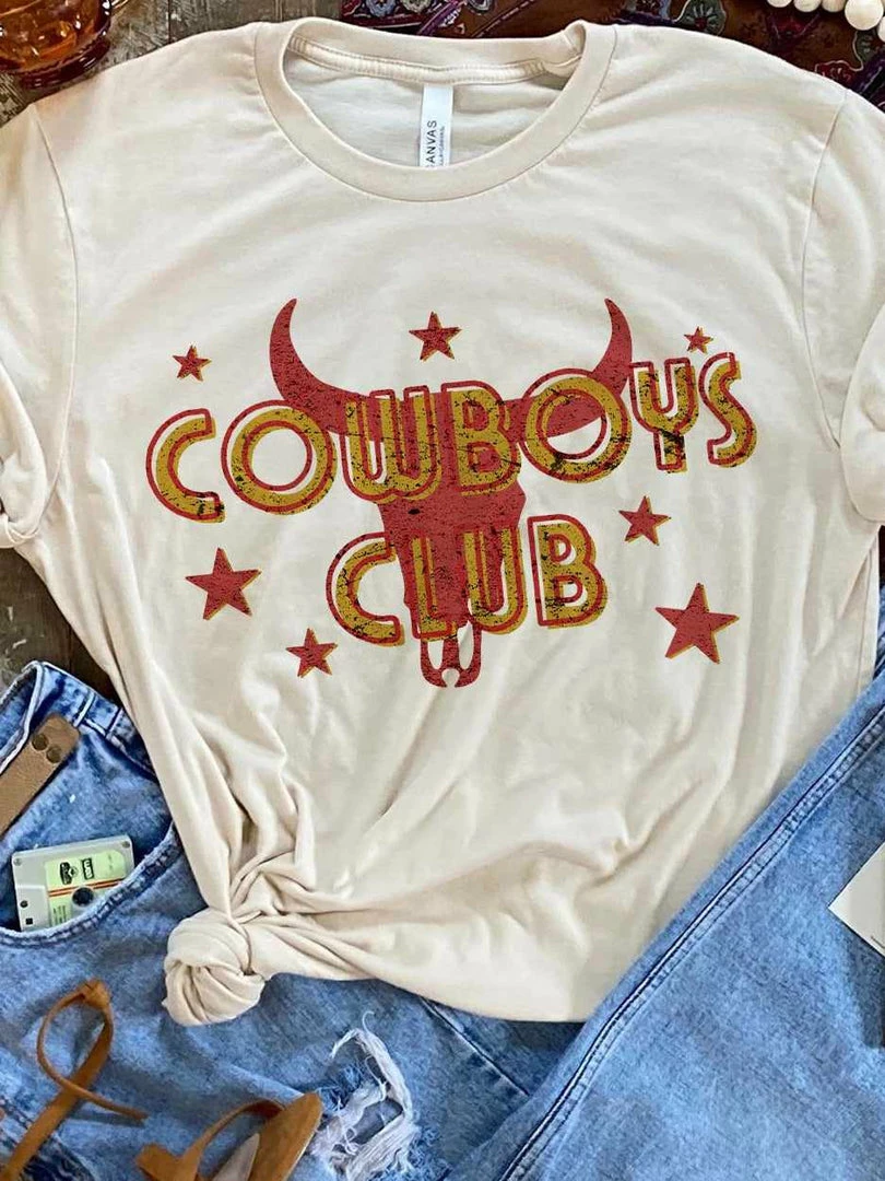 Cowboys Club Tee! This tee is perfect for layering. Easily dressed up or dressed down! Printed on a unisex super-soft tee. Cream-natural colored.
