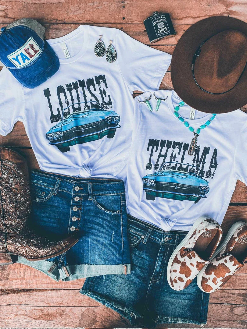 Are you Louise? Do you have a Thelma? These tees are too cute for you and your partner in crime! Printed on a soft style Bella Canvas Tee!