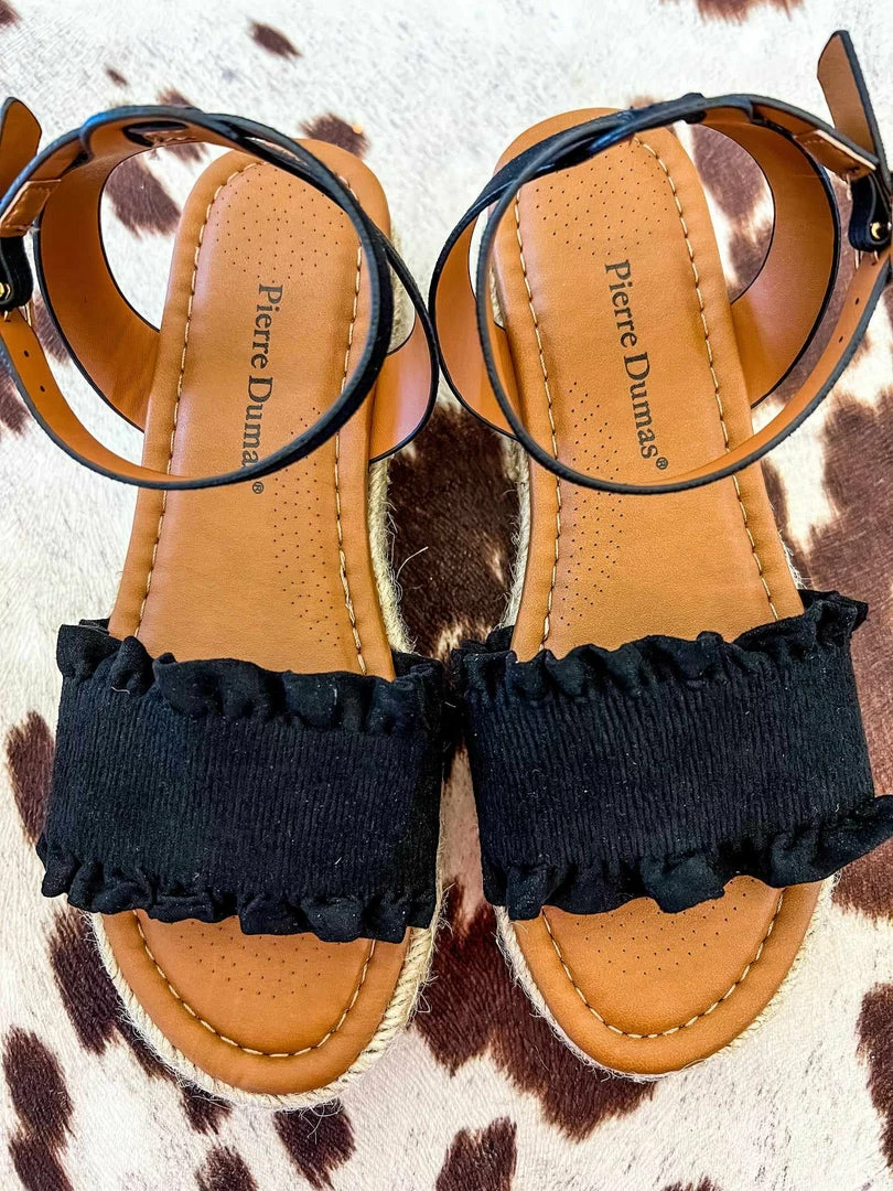 Back to the basics in these black platform sandals. Pairs perfectly with your favorite sundress or graphic tees!Â
