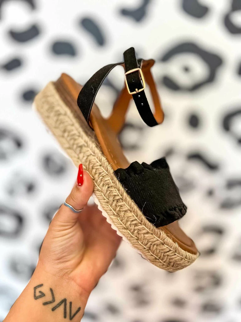 Black Espadrille Slingback Platform Sandals