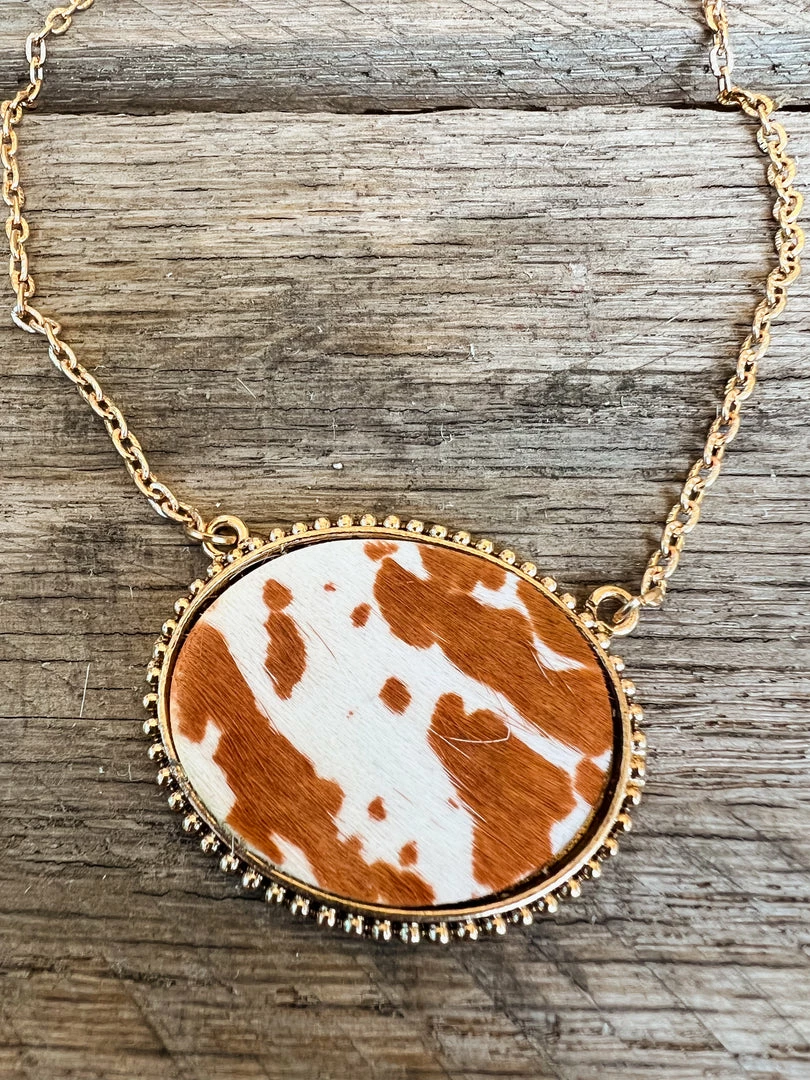This gold cowhide necklace with a gold chain won’t cure lactose intolerance, but it will certainly look amazing against anything denim! It’s more country than a cowgirl hat!
